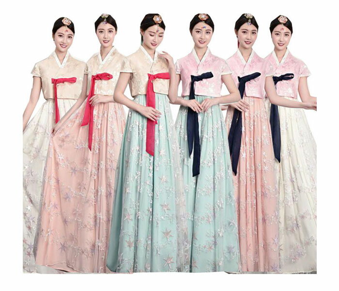 レディース韓服ドレス 大人用民族衣装 チマチョゴリ 7色可愛い韓国伝統民族衣装 小花刺繍 ロング丈キ・・・