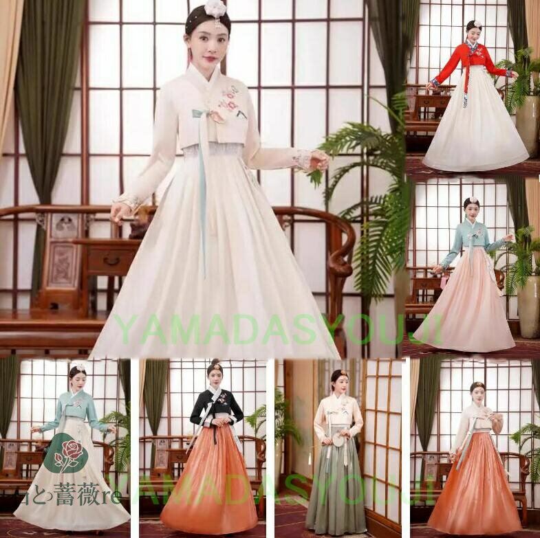 韓服 チマチョゴリ 韓国民族衣裳 新作 刺繍入ドレス 舞台ステージダンス衣装 8色 宮廷韓服ドレスレ・・・