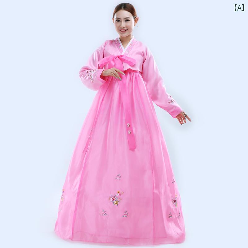 韓服 チマチョゴリ 韓国民族衣裳 舞台 ステージ ダンス 衣装 刺繍入 宮廷 韓服 ドレス チマチョ・・・