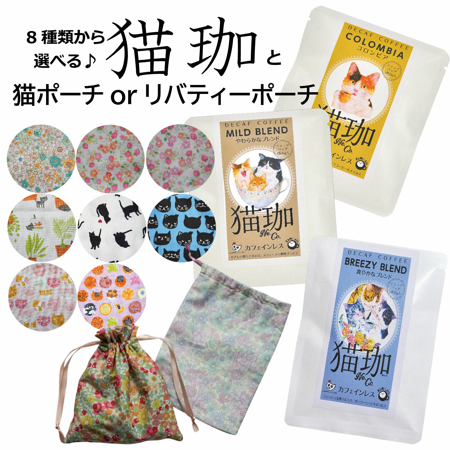 カフェインレスコーヒー 猫好き ラッピング無料 ママ用 バレンタイン ホワイトデー 誕生日 誕生日プレゼント 猫の日 友チョコ リバティー リバティー柄 ポーチ 可愛い 猫柄