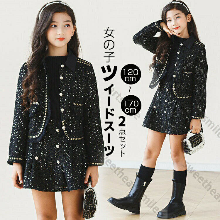 卒業式 2点セット ツイード コート スカート 入学式 卒服 小学校女子 スーツ 女の子 柄 韓国 ・・・