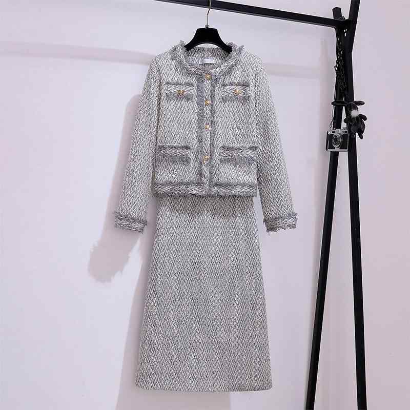 セットアップ レディース 秋冬 韓国 ファッション ツイード ジャケット スカート 上下セット 長袖・・・