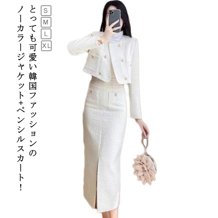 ツイード セットアップ 韓国 入学式 ママスーツ 入園式 セレモニーワンピース セレモニースーツ 七五三 母親 卒業式 卒園式 ジャケット ロングスカート 可愛い 韓国 ツイードツーピース