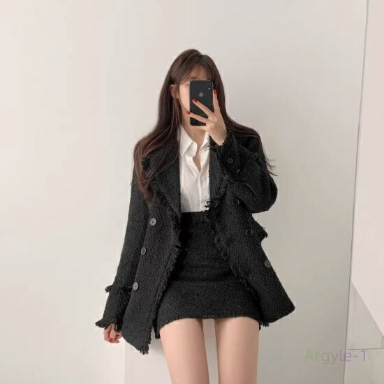 ツイードセットアップ 韓国 レディース ツイードジャケット ツイードワンピース 秋 冬 Aラインシルエットの可愛い韓国ジャケット付きひざ丈ワンピース