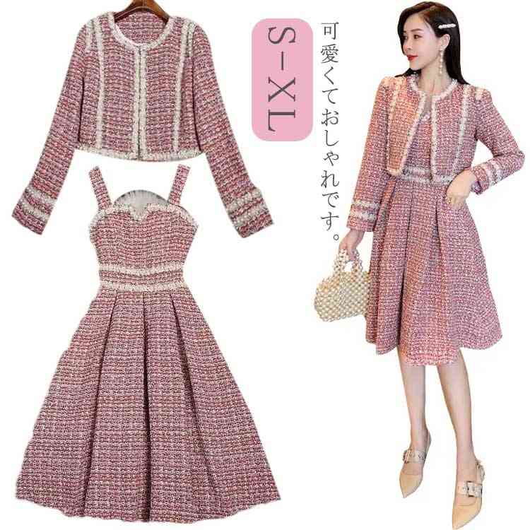 レディース ツイード セットアップ ツーピース 韓国 セレモニー かわいい ミニスカート ジャケット・・・
