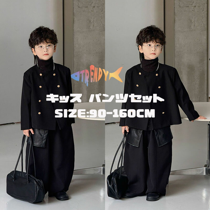 ツイード風 パンツスーツ 男の子 卒業式 女の子 入学式 セットアップ 大人っぽい 黒 ジャケット ・・・