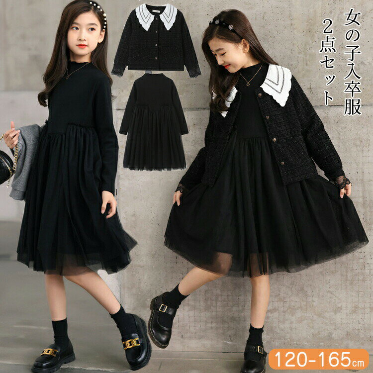 【2点セット】ジャケット 白襟 ビッグ襟 チュールワンピース 卒業式 スーツ 女の子 フォーマル ワンピース 入学式 卒業式 入園式 フォーマル セットアップ ブラック グレー