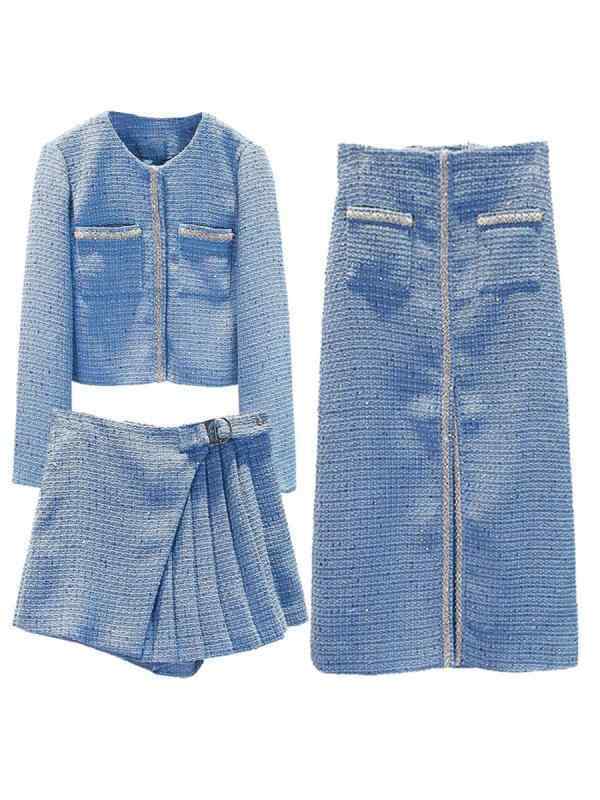 セットアップ レディース 春秋 ツイード ジャケット 長袖 ショート丈 スカート ロング丈 キルティ・・・