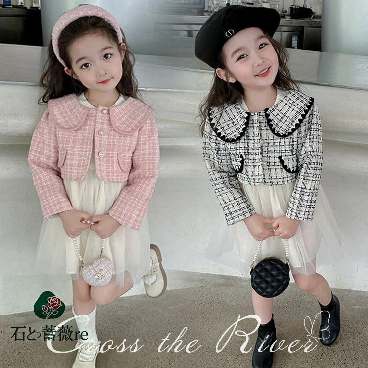 卒業式 スーツ 女の子 ツイード ジャケット 卒服 入学式 小学校女子 コート ワンピース 2点セッ・・・