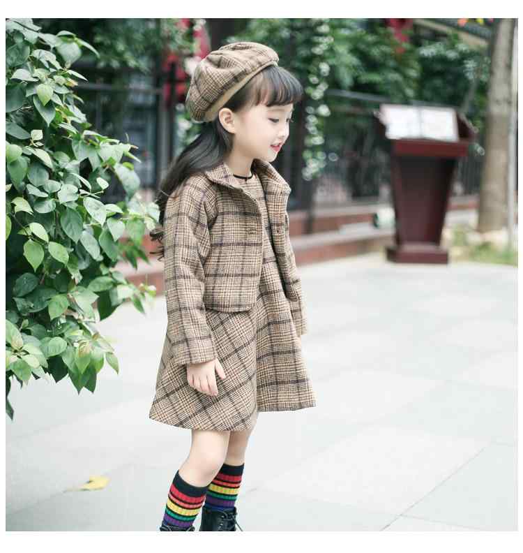 キッズ 女の子 ツイード調 ジャンパースカート ジャケット ベレー帽 3点セット 秋冬 チェック柄 ・・・