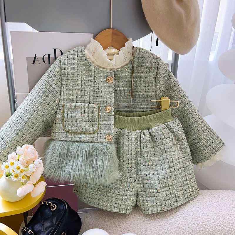 セットアップ キッズ 女の子 ジュニア 韓国風 上品 クラシック ツイード ジャケット 中綿入り 厚・・・