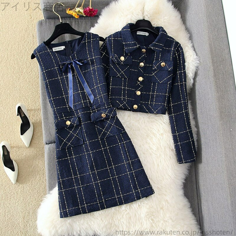ツイードセットアップ 韓国 レディース ツイードジャケット ツイードスカート ツイードワンピース 秋・・・