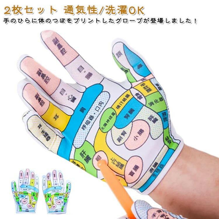 手ツボ押し ツボが見える手袋 疲れ緩和 2枚セット 両面印刷ツボ ストレス解消 通気性 手のひら 柔・・・