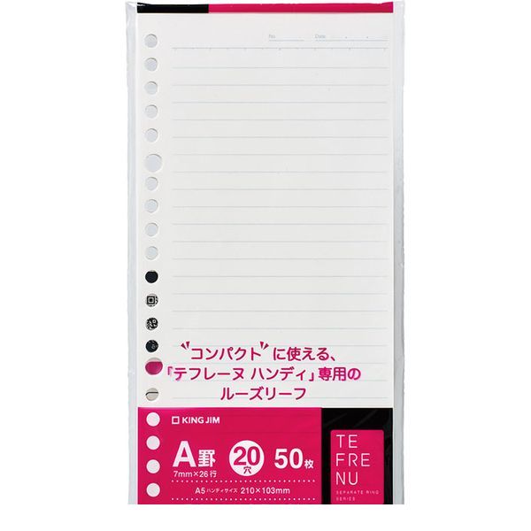 キングジム テフレーヌ ハンディ用ルーズリーフ A5変形 A罫20穴 50枚入り