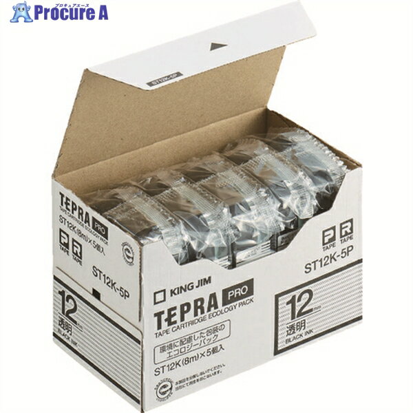 KING JIM 【純正】「テプラ」PROテープ 12mm エコパック(5個入り)/透明ラベル/黒文・・・