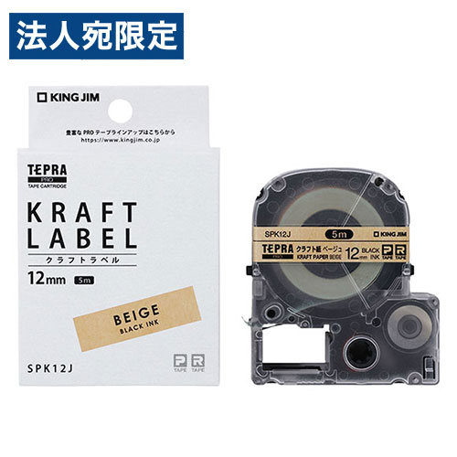 キングジム テプラPROテープカートリッジ クラフトラベル ベージュ 白文字 12mm×5m SPK・・・