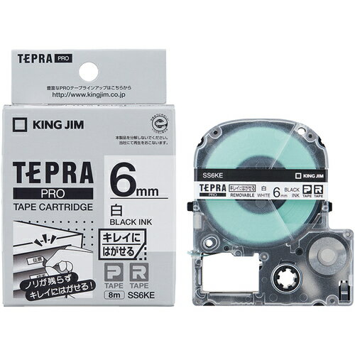KING JIM 【純正】「テプラ」PROテープ 6mm キレイにはがせるラベル/白ラベル/黒文字 ・・・