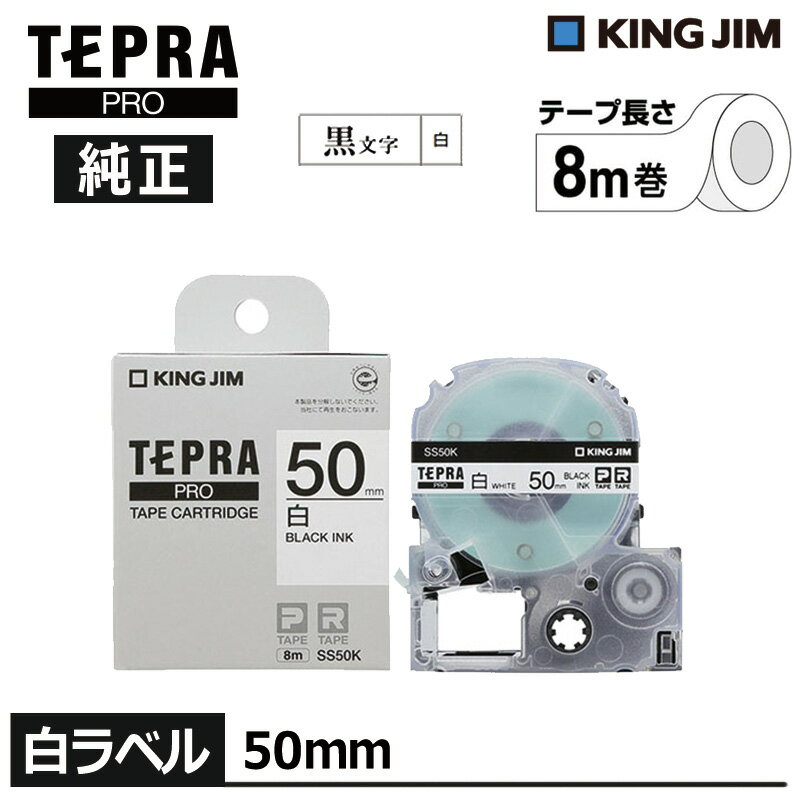 【KING JIM】キングジム テプラ PRO 純正 テープカートリッジ 白ラベル 50mm幅 黒文・・・