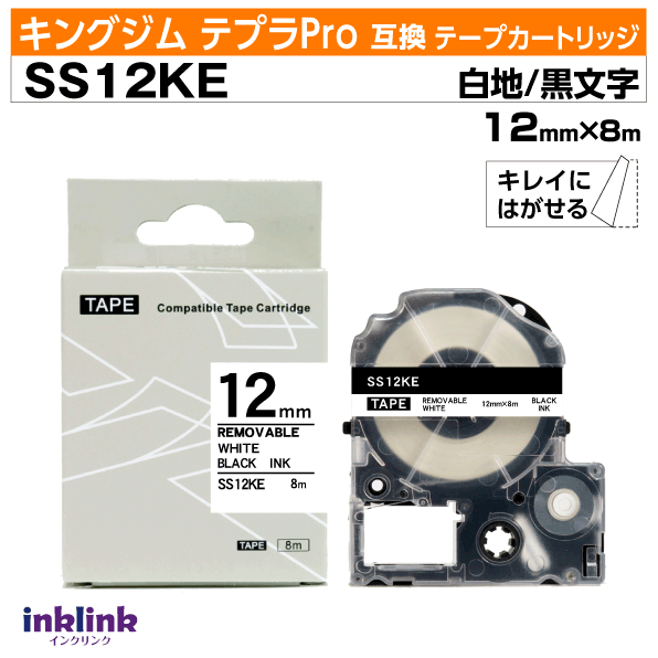 キングジム テプラPro用 互換テープカートリッジ SS12KE 12mm幅〔きれいに剥がせるラベル・・・
