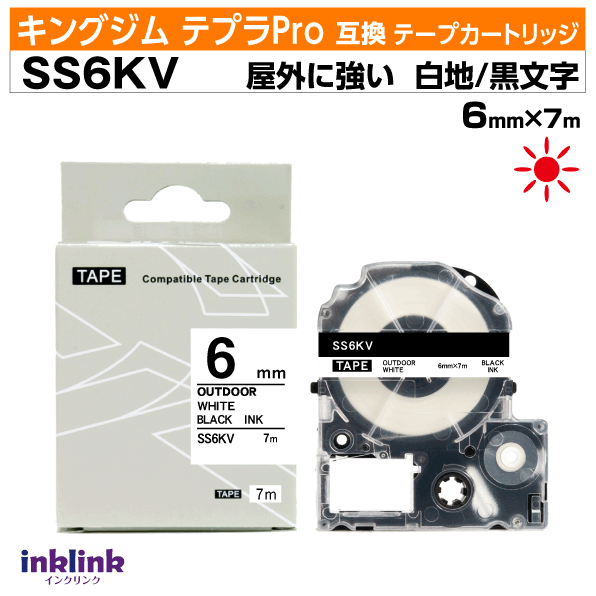 キングジム テプラPro用 互換テープカートリッジ SS6KV 6mm幅〔屋外に強いラベル〕白地 黒・・・