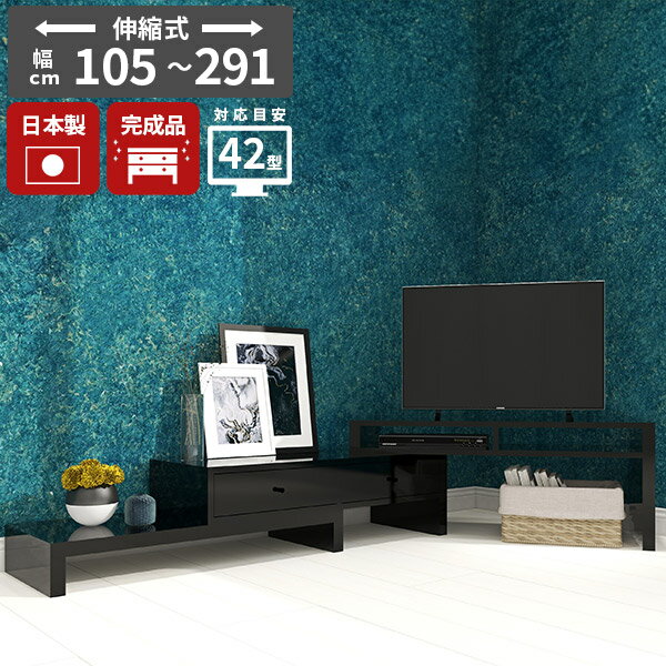 テレビ台 ローボード ブラック 黒 鏡面 伸縮 おしゃれ テレビボード コーナー 伸縮テレビ台 コーナーテレビ台 TVボード リビングボード テレビ 完成品 TV台 コーナーテレビボード