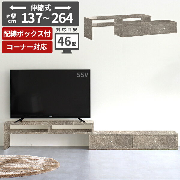テレビ台 伸縮 コーナー置き コーナー ローボード おしゃれ 完成品 大理石柄 テレビラック テレビボード コーナーボード TV台 台 42インチ コード収納 40型 リビングボード 伸縮ボード