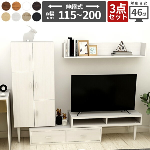 【お得な3点SET】 テレビ台 キャビネット 伸縮 扉付き ウォールラック リビングボード ウォールシェルフ 賃貸 可愛い 一人暮らし 収納 多い 家具 北欧 リビング収納 家具セット