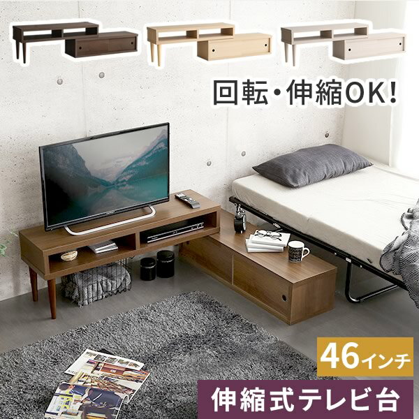 伸縮式テレビ台 引き戸タイプ 完成品 コーナーテレビ台 収納 ローボード TVラック シンプル リビングボード おしゃれ