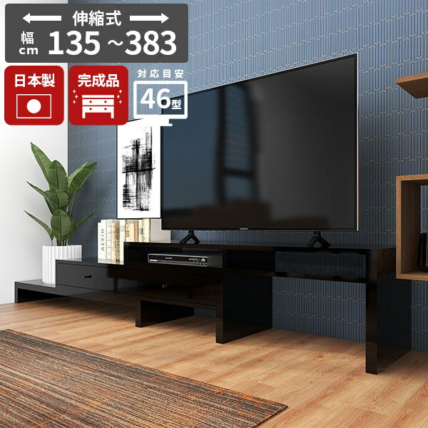 コーナーTV台 TV台 伸縮テレビ台 完成品 収納 引き出し付き ローボード 日本製 テレビボード コーナーテレビ台 黒 ブラック 伸縮 TVボード 伸縮テレビボード 国産 低め