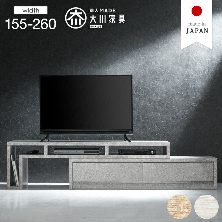 セラミック調 伸縮式 テレビ台 幅155-260cm 国産 完成品 伸縮テレビ台 伸縮 伸長式 日本・・・