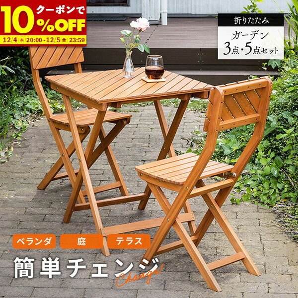 木製 ガーデンセット ガーデンテーブル ガーデンチェア イス 屋外 おしゃれ バルコニー 屋外 アウトドア 庭 ベランダ テラス 折り畳み 天然木 ガーデンファニチャー