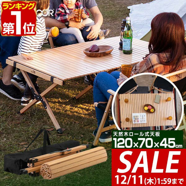 コンパクト 木目調 アルミ ロールテーブル 幅117cm 軽量 テーブル フォールディングテーブル アウトドアテーブル アウトドア キャンプ ピクニック 海 フェス ファミリー ハイスタイル