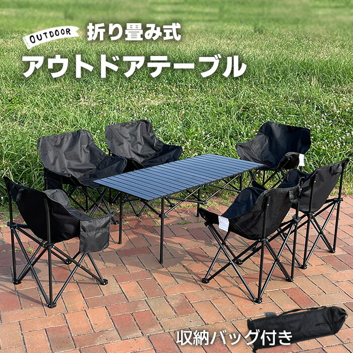 折り畳み式テーブル 四つ脚型 ロールテーブル 屋外用 キャンプ バーベキュー [ ブラック&ブラック・・・