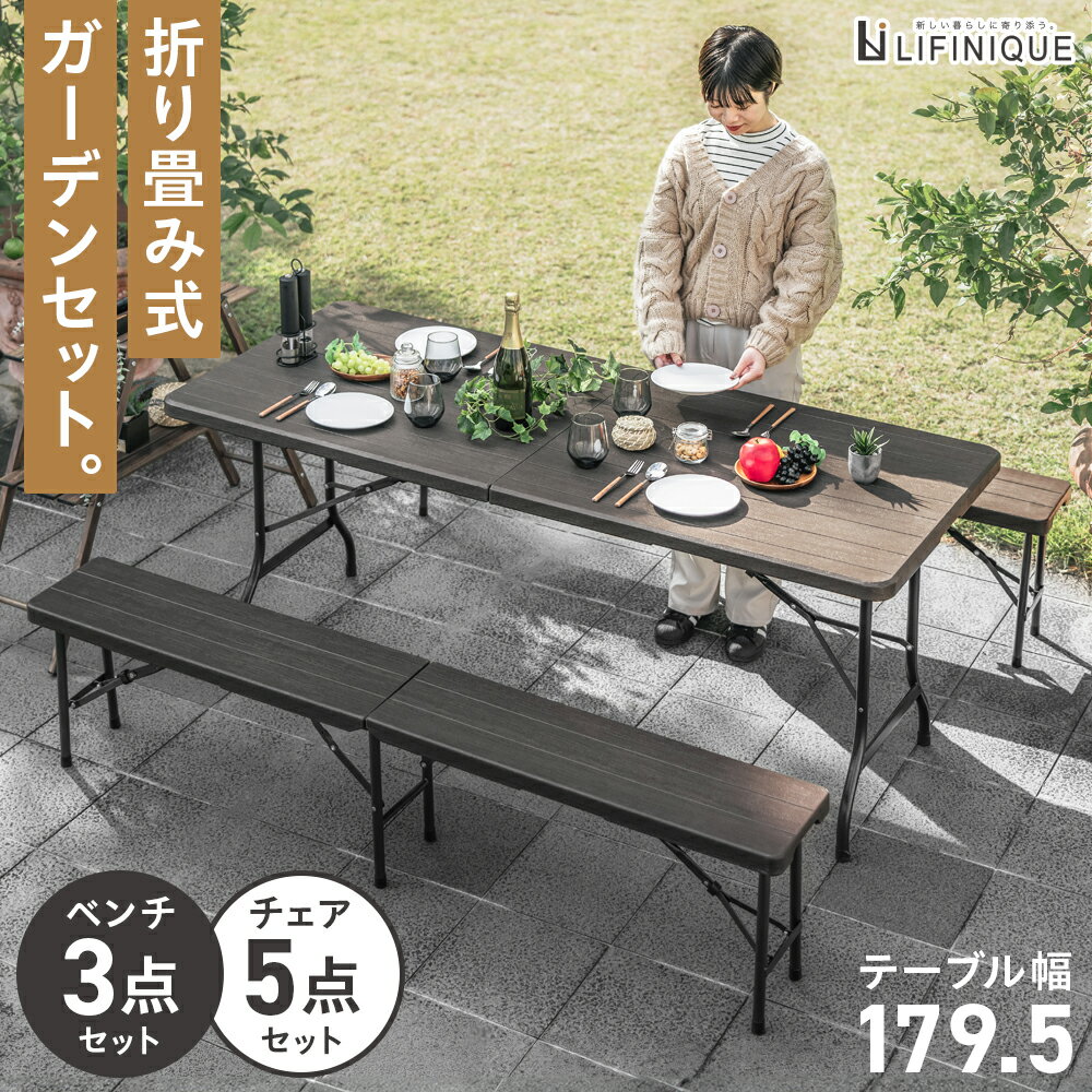 ガーデンファニチャー 屋外家具 机 長椅子 チェア コンパクト 木目調 庭 エクステリア ガーデニング ピクニック アウトドア キャンプ BBQ レジャー バルコニー テラス カフェ パーティ