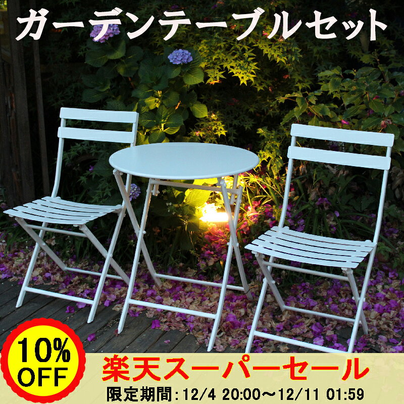 【送料無料】ガーデンテーブル 折り畳み式 組立不要 収納簡単 テーブル チェア 3点 セット 雨に強い バルコニーテーブル カフェ テーブル 屋外 折りたたみ式 ガーデンファニチャー