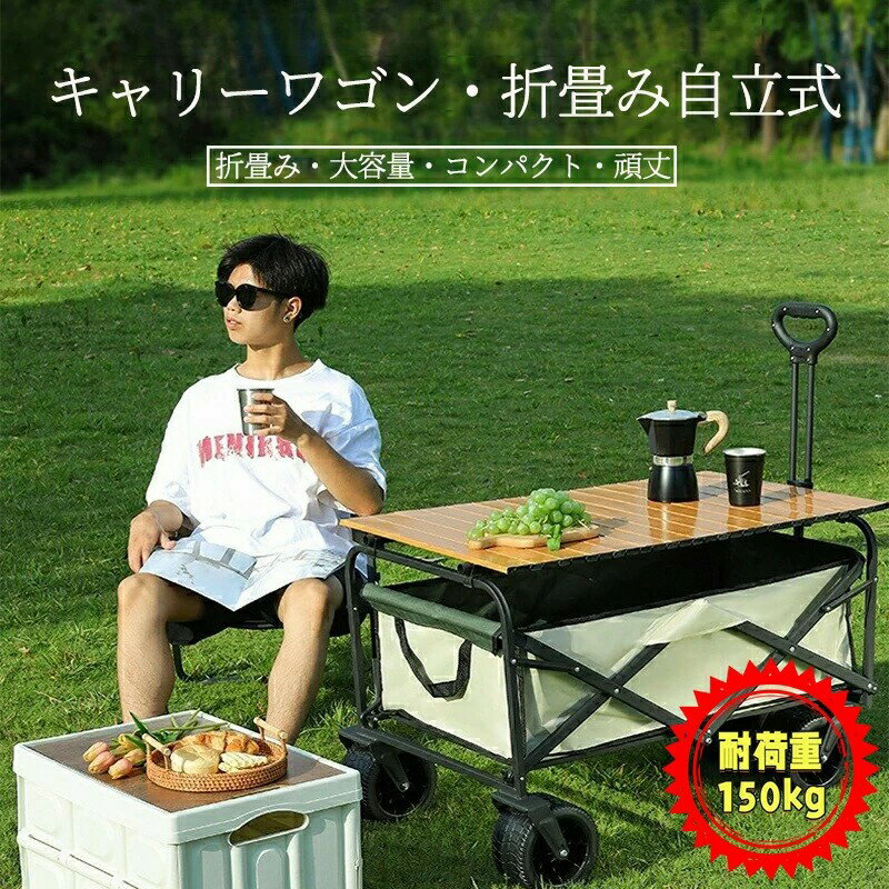 キャリーワゴン 折りたたみキャリーカート テーブル付き 大容量 150L アウトドア キャンプ レジ・・・