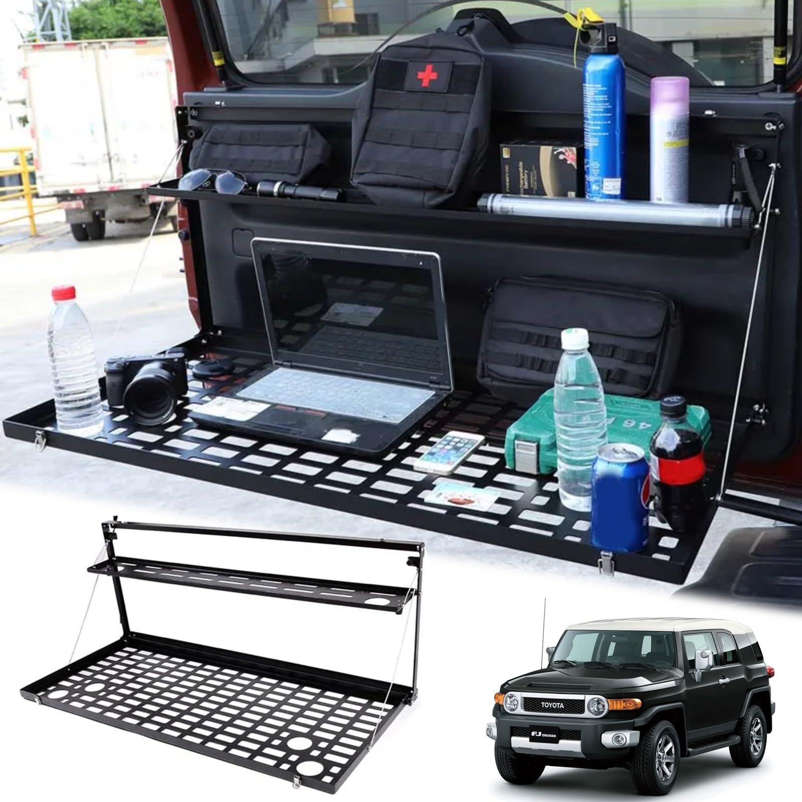 トヨタfjクルーザー 2007-2021に適用 リアドア収納ラック トランク収納ボックス 折り畳み式・・・