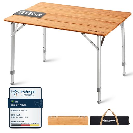 KingCamp折りたたみテーブルキャンプテーブルアウトドア高さ調整バンブーロールテーブル天然孟宗竹・・・