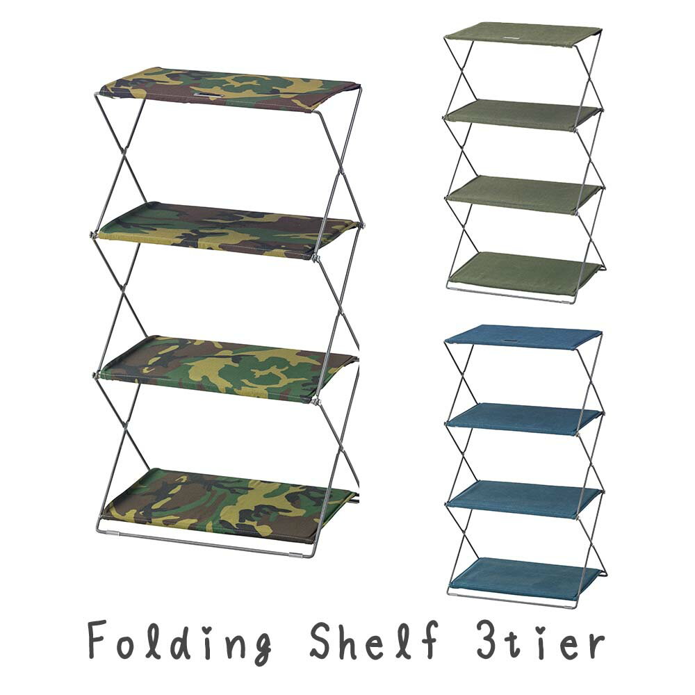 グリーン ネイビー 緑 濃紺 折りたたみシェルフ 折り畳みシェルフ 簡易棚 4段 四段 布製 コンパクト 持ち運び おりたたみ 折りたたみ 折り畳み キャンプ アウトドア