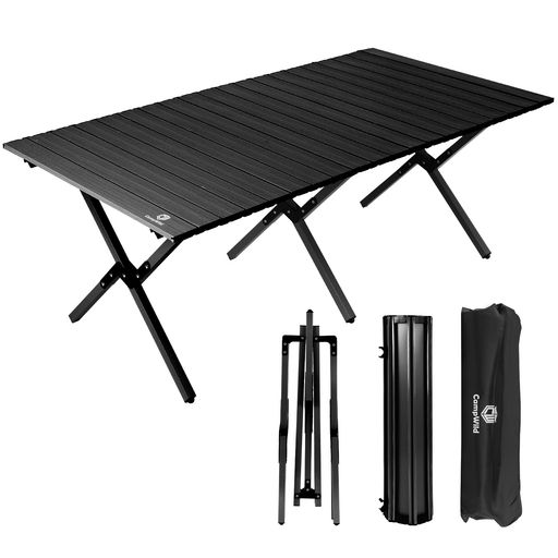 Campwildアウトドアテーブルウッドロールトップテーブル折りたたみコンパクト収納簡単組立収納バッ・・・