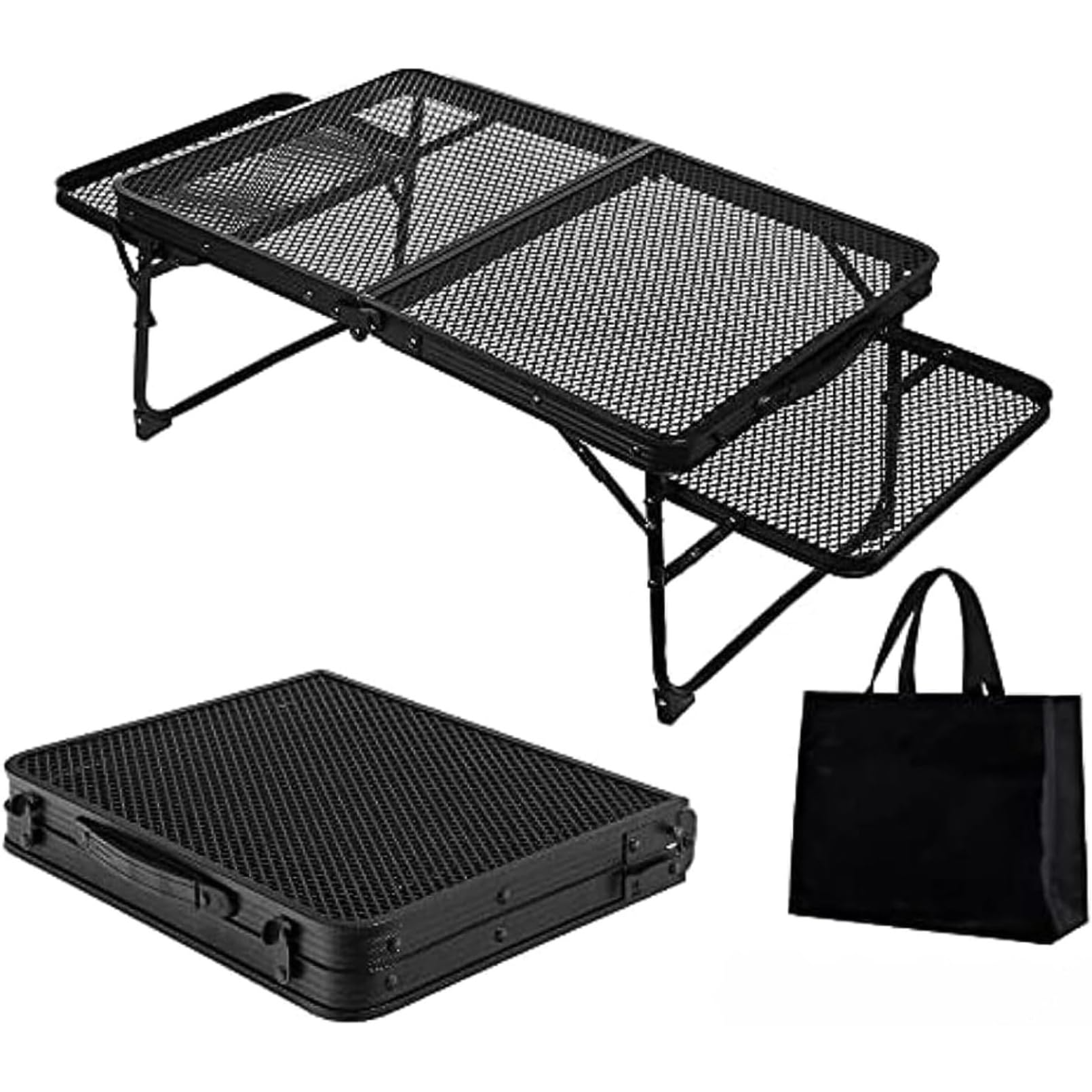 軽量アルミ製 折りたたみキャンプテーブル|メッシュサイドテーブル付き|耐荷重40 耐熱設計|焚き火・・・・
