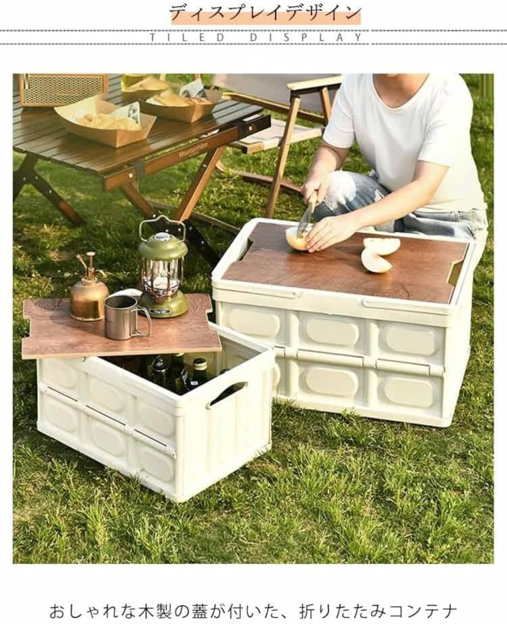 折りたたみコンテナ フタ付き 取っ手付き 56L 収納ボックス 木製蓋付き 大容量 アウトドア テー・・・