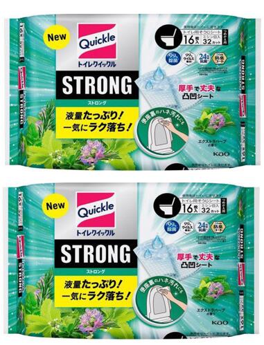 【送料込み×2個】花王 トイレクイックル ストロング エクストラハーブの香り つめかえ用 16枚×2・・・