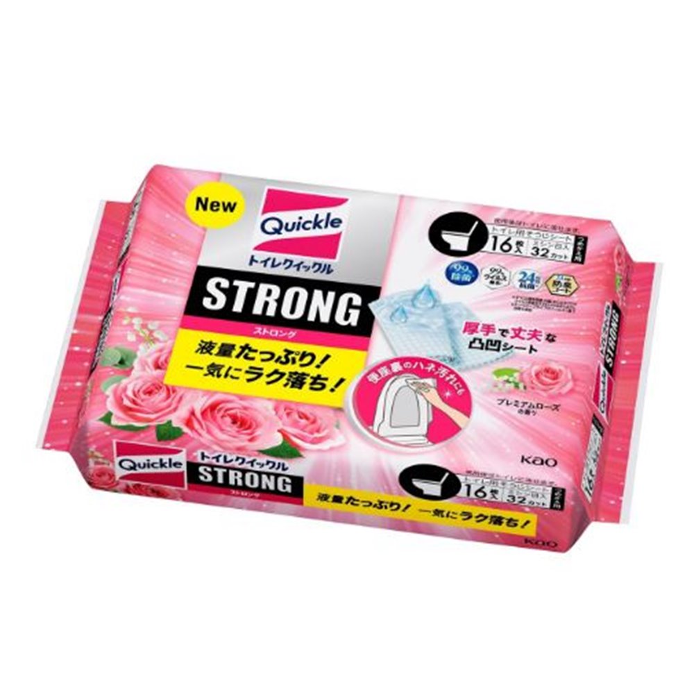 (まとめ) 花王トイレクイックル STRONG プレミアムローズの香り つめかえ用 1パック(16枚・・・