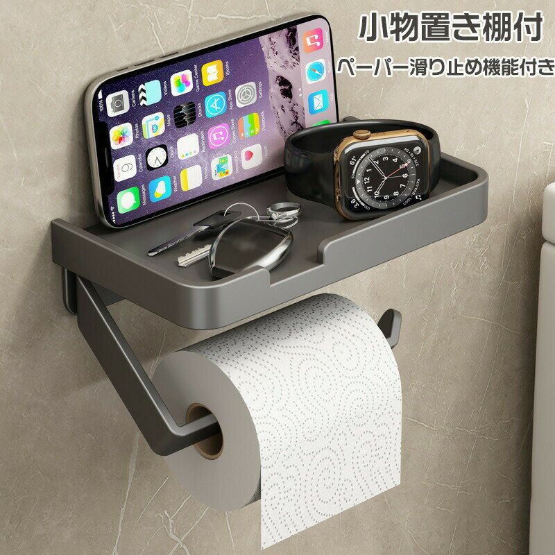 トイレットペーパーホルダー おしゃれ 壁掛け スマホ置き 小物置き棚付 高級感 飾り棚 シングル ア・・・