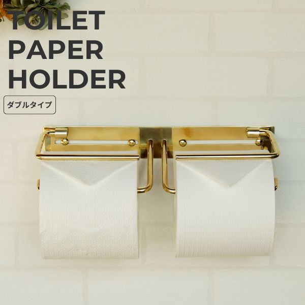 飽きのこないスタンダードデザイン◎ トイレットペーパーホルダー ダブル 2連 収納 トイレ雑貨 インテリア雑貨 ゴールド 金 真鍮