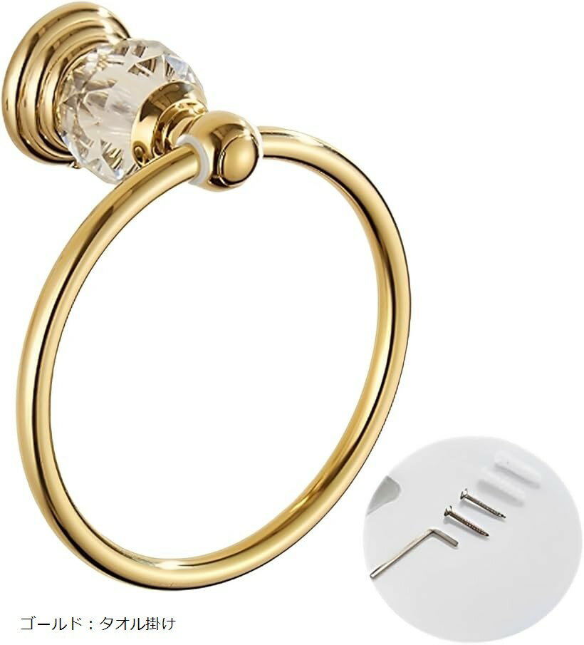 トイレットペーパーホルダー タオル掛け おしゃれ カバーネジ留め タオルリング ゴールド:タオル掛け・・・