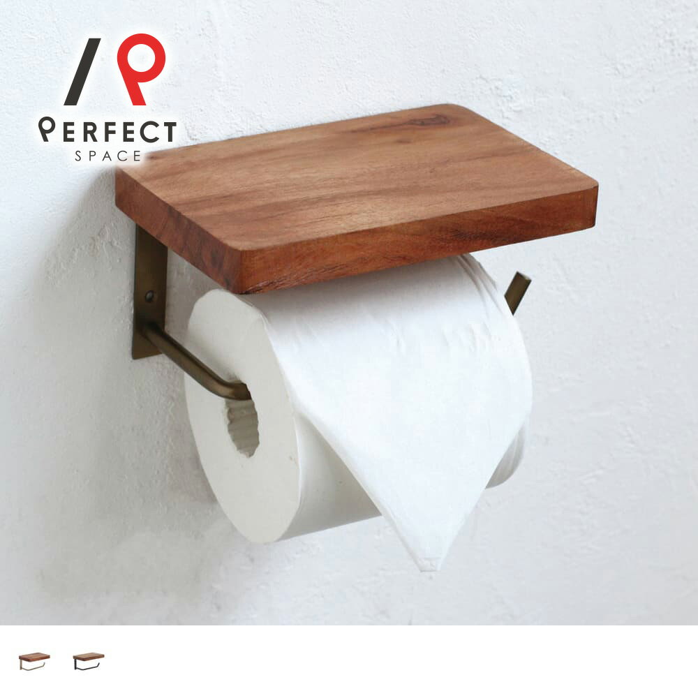【天然木x真鍮】トイレットペーパーホルダーおしゃれ棚付き賃貸DIY既存の穴利用防塵設計簡単設置・・・