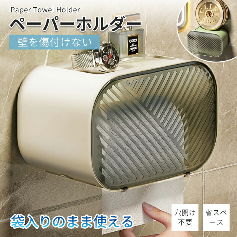 ペーパータオルホルダー 壁掛け 透明 ウォールペーパーホルダー ペーパータオルホルダー 穴開け不要 ・・・