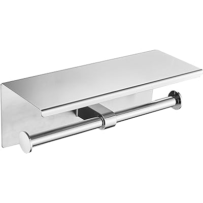 石こうボードピンでトイレの壁のお好みの位置に簡単に取り付け。スタイリッシュなスチール製のトイレットペーパーホルダーシングル。スマホや小物が置ける天板付き。